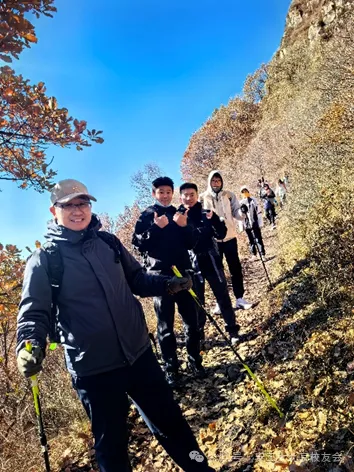 徒步过程既是对体能的挑战,也是对意志的磨砺。山路蜿蜒,部分路段颇具难度,但校友们相互鼓励,彼此照应。资深徒步爱好者不时分享经验,提醒大家调整呼吸与步伐;同行家属与小朋友们也展现出惊人的毅力,欢声笑语回荡在山谷之间,冲淡了攀登的疲惫。此次队伍中,不少校友是初次见面,一路上的交流互助,从行业见解到生活趣事,迅速拉近了彼此的距离,陌生的面孔变得熟悉,同窗情谊在攀登中持续升温。