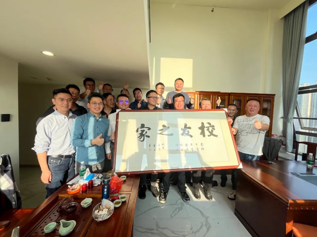 挂牌仪式主场,设在98 级机械专业校友翟相舒创办的公司。会长孙为军特意邀请广州书法家题写了 “校友之家” 牌匾。孙为军会长与陈旭秘书长共同为顺德 “校友之家” 家长翟相舒授牌,沉甸甸的牌匾里,是母校情与校友缘的凝结。授牌完毕,所有到场校友共同举牌合影,笑容与暖意定格在镜头里;随后,高明、南海、东莞等地 “校友之家” 的家长们与翟相舒一道,将牌匾稳稳挂起,这方新 “家” 就此在顺德扎下根。